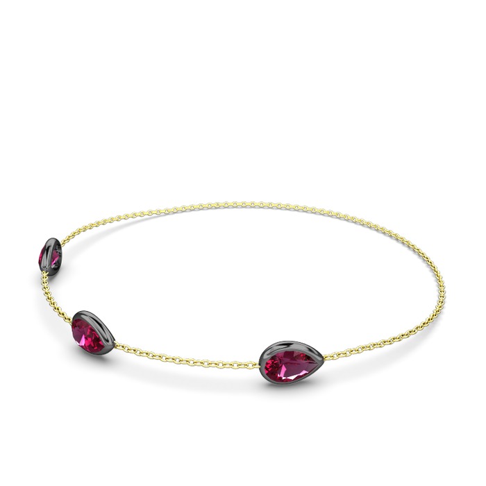 Rodolit garnet 925 ayar siyah rodyum kaplama gümüş bilezik (17 cm gümüş rolo zincir)