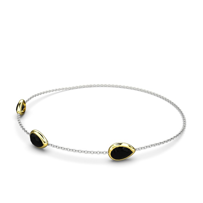 Siyah zirkon 14 ayar altın bilezik (17 cm beyaz altın rolo zincir)