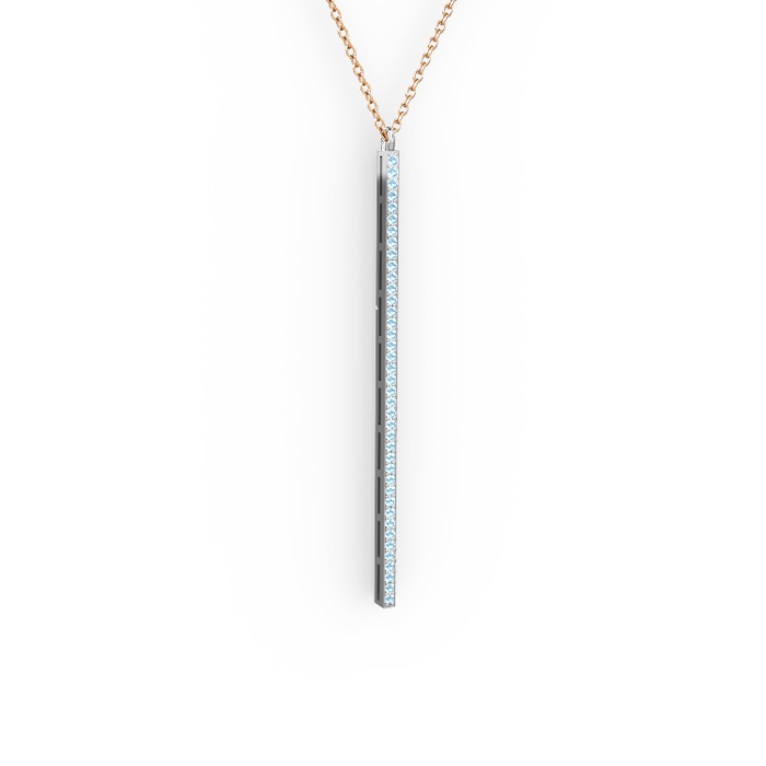 Akuamarin 18 ayar beyaz altın kolye (40 cm rose altın rolo zincir)