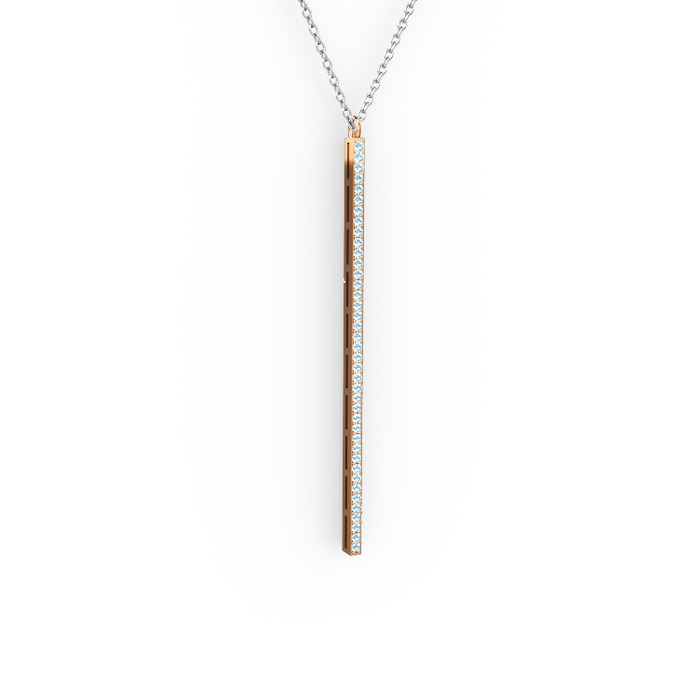 Akuamarin 8 ayar rose altın kolye (40 cm beyaz altın rolo zincir)