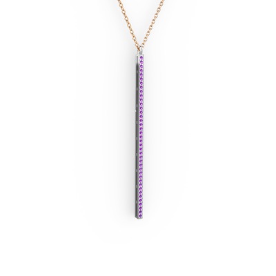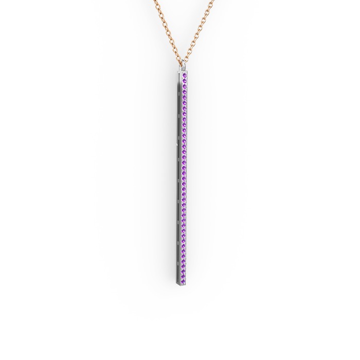 Ametist 14 ayar beyaz altın kolye (40 cm gümüş rolo zincir)