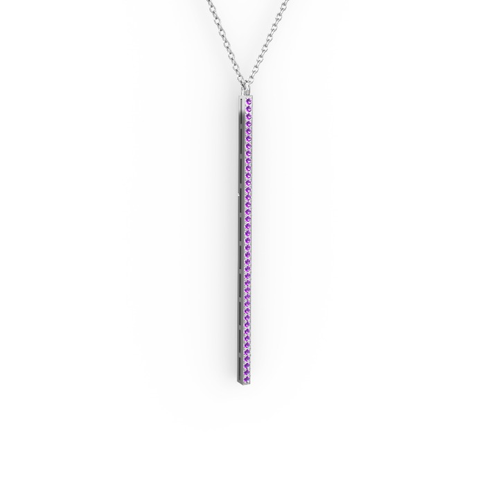 Su Yolu Kolye - Ametist 18 ayar beyaz altın kolye (40 cm beyaz altın rolo zincir)