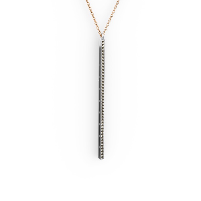 Dumanlı kuvars 18 ayar beyaz altın kolye (40 cm rose altın rolo zincir)