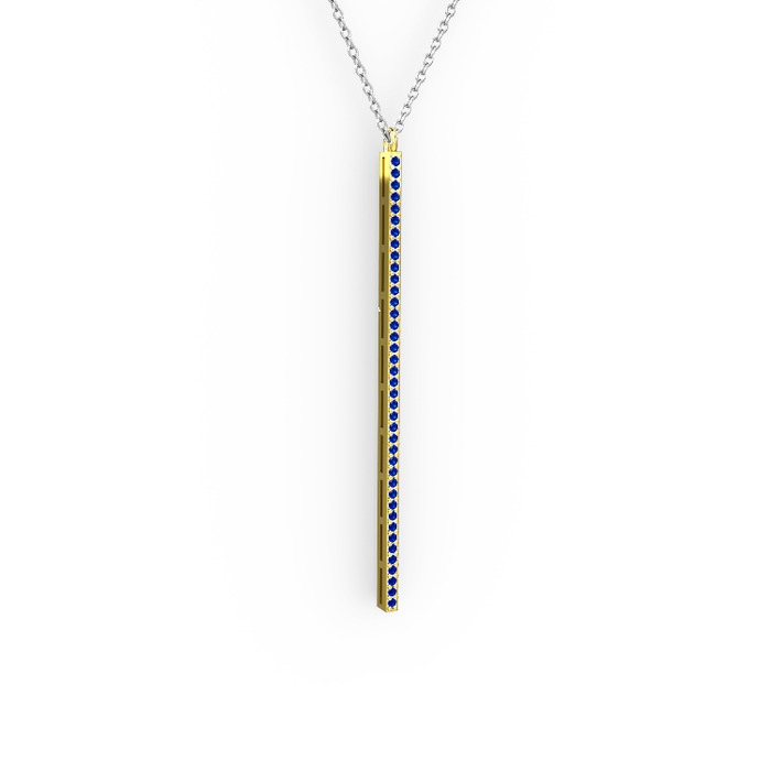 Lab safir 14 ayar altın kolye (40 cm beyaz altın rolo zincir)