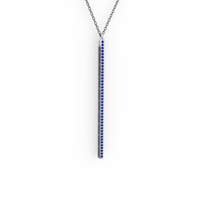 Lab safir 14 ayar beyaz altın kolye (40 cm gümüş rolo zincir)