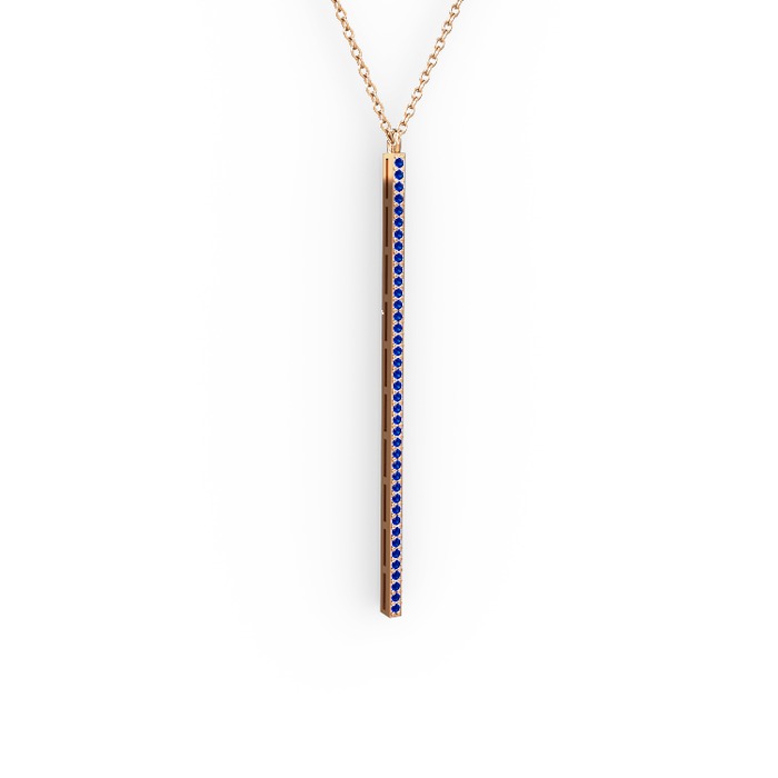 Lab safir 18 ayar rose altın kolye (40 cm rose altın rolo zincir)