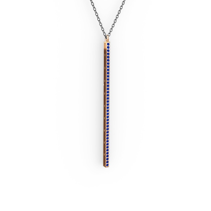 Lab safir 8 ayar rose altın kolye (40 cm gümüş rolo zincir)