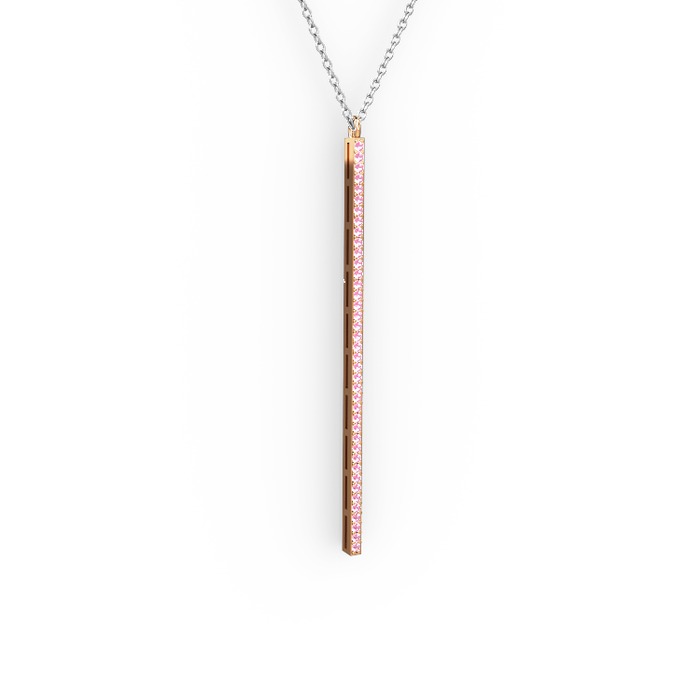 Pembe kuvars 8 ayar rose altın kolye (40 cm beyaz altın rolo zincir)