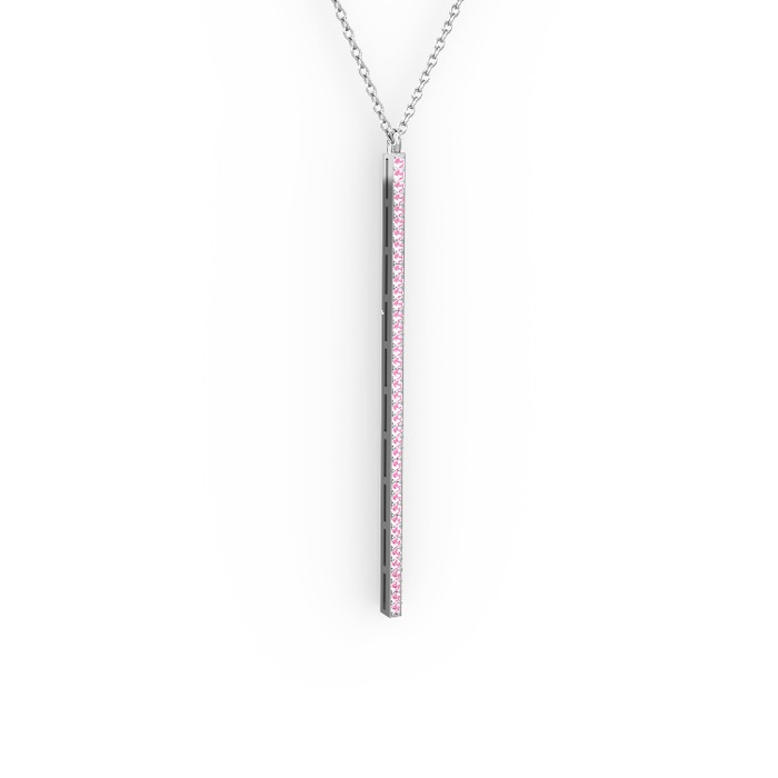 Pembe kuvars 925 ayar gümüş kolye (40 cm beyaz altın rolo zincir)