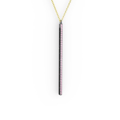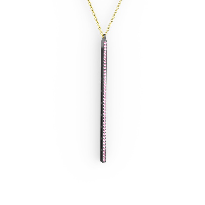 Pembe kuvars 925 ayar siyah rodyum kaplama gümüş kolye (40 cm altın rolo zincir)
