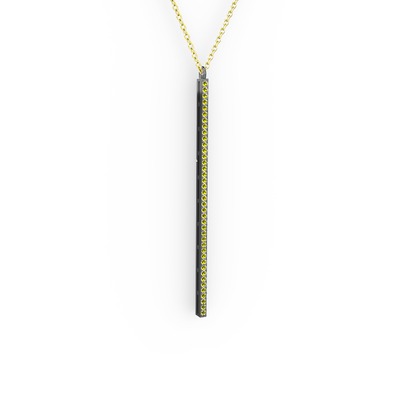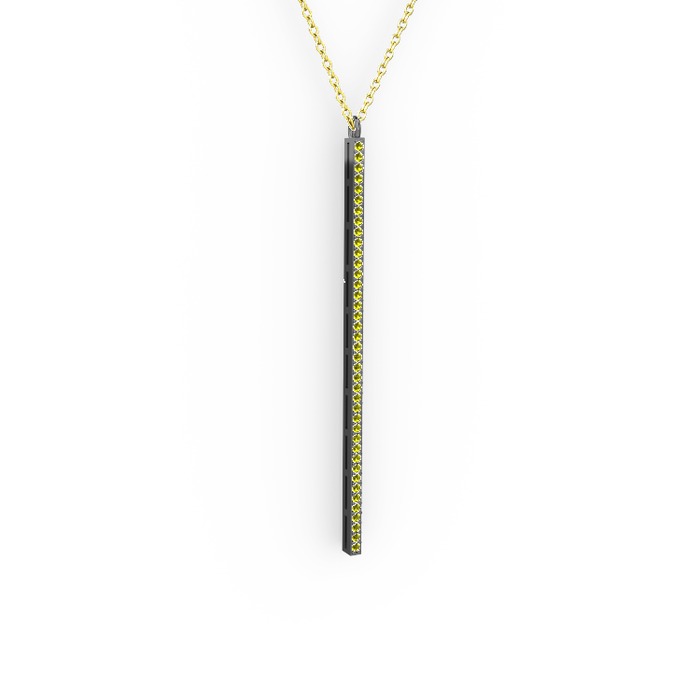 Peridot 925 ayar siyah rodyum kaplama gümüş kolye (40 cm altın rolo zincir)