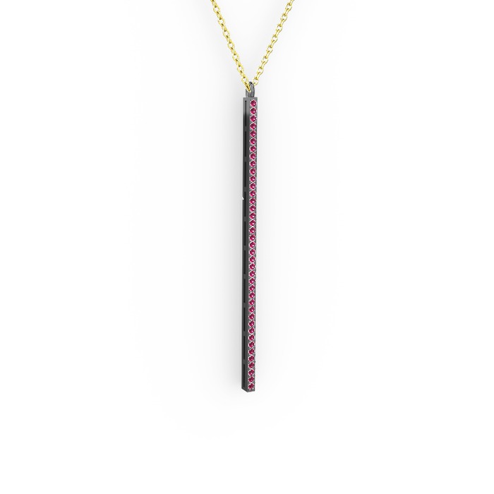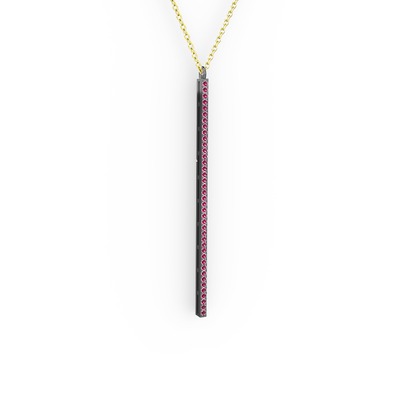 Rodolit garnet 925 ayar siyah rodyum kaplama gümüş kolye (40 cm altın rolo zincir)