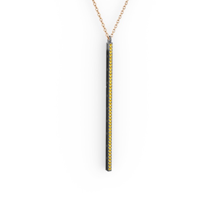 Sitrin 925 ayar siyah rodyum kaplama gümüş kolye (40 cm rose altın rolo zincir)