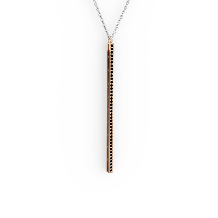 Siyah zirkon 14 ayar rose altın kolye (40 cm gümüş rolo zincir)