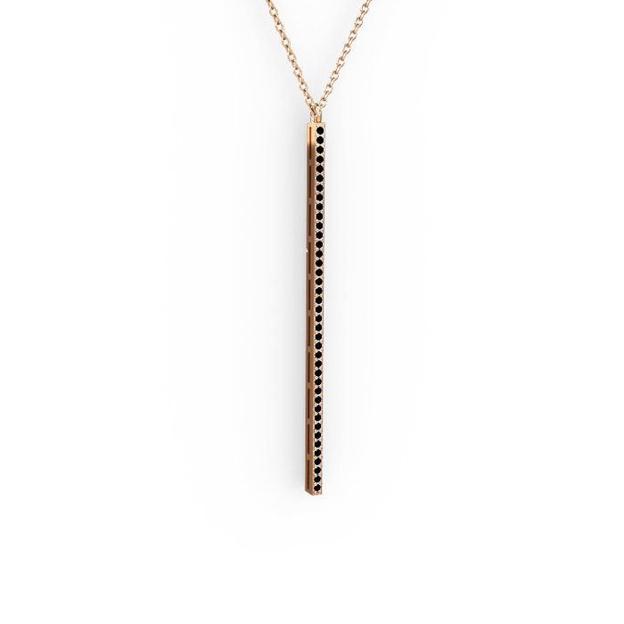 Siyah zirkon 925 ayar rose altın kaplama gümüş kolye (40 cm gümüş rolo zincir)