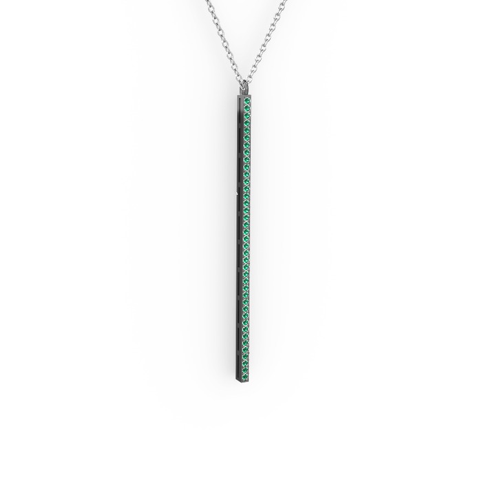 Yeşil kuvars 925 ayar siyah rodyum kaplama gümüş kolye (40 cm beyaz altın rolo zincir)