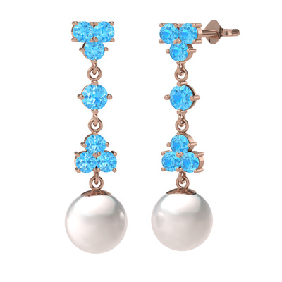 Akuamarin ve inci 925 ayar rose altın kaplama gümüş küpe