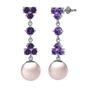 Ametist ve pembe inci 8 ayar beyaz altın küpe
