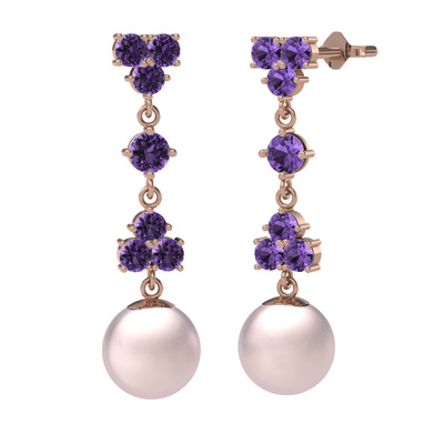 Ametist ve pembe inci 925 ayar rose altın kaplama gümüş küpe