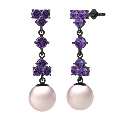 Ametist ve pembe inci 925 ayar siyah rodyum kaplama gümüş küpe
