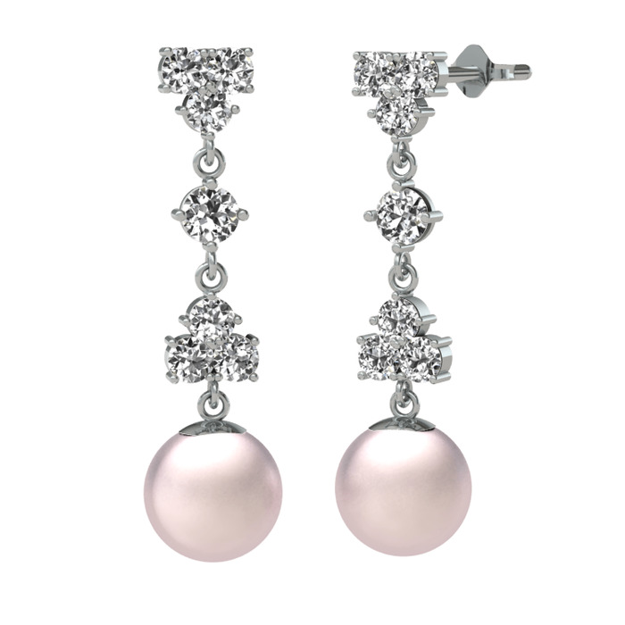 Beyaz zirkon ve pembe inci 18 ayar beyaz altın küpe