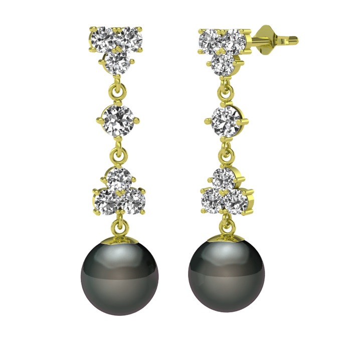 Beyaz zirkon ve siyah inci 8 ayar altın küpe