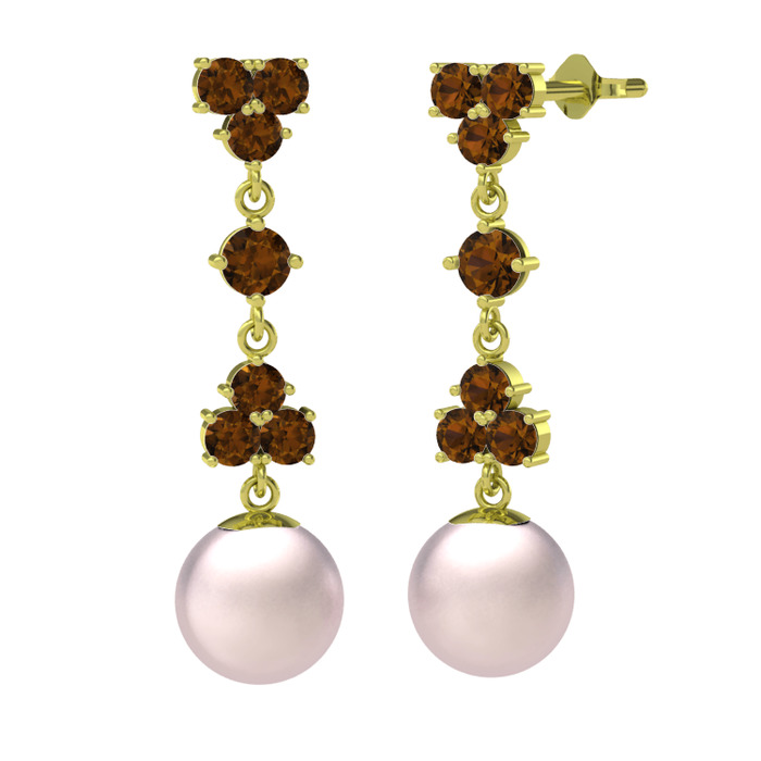 Dumanlı kuvars ve pembe inci 8 ayar altın küpe