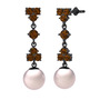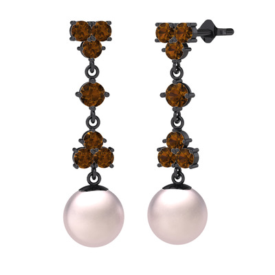Dumanlı kuvars ve pembe inci 925 ayar siyah rodyum kaplama gümüş küpe