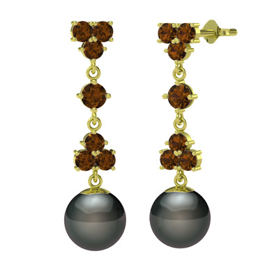 Dumanlı kuvars ve siyah inci 14 ayar altın küpe