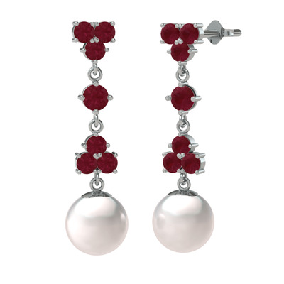 Kök yakut ve inci 14 ayar beyaz altın küpe