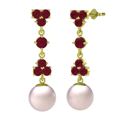 Kök yakut ve pembe inci 18 ayar altın küpe