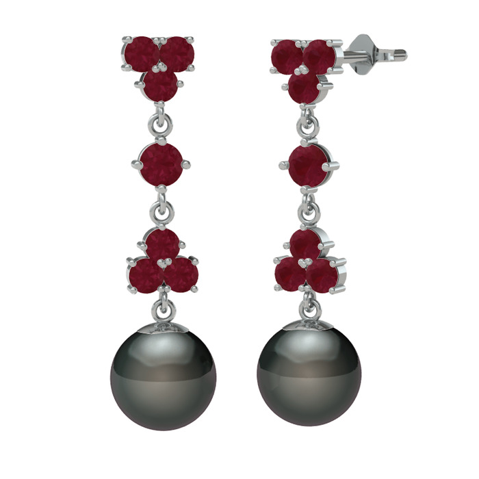 Kök yakut ve siyah inci 18 ayar beyaz altın küpe