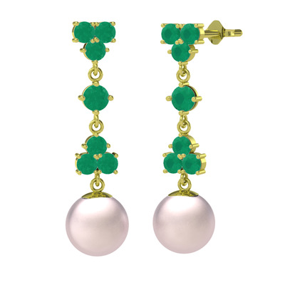 Kök zümrüt ve pembe inci 14 ayar altın küpe