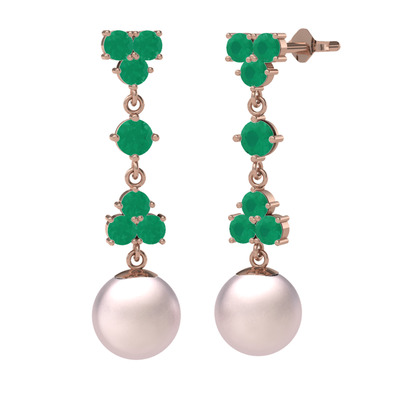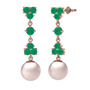 Kök zümrüt ve pembe inci 18 ayar rose altın küpe