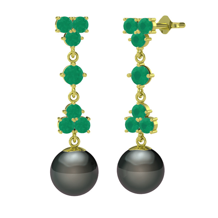 Kök zümrüt ve siyah inci 925 ayar altın kaplama gümüş küpe