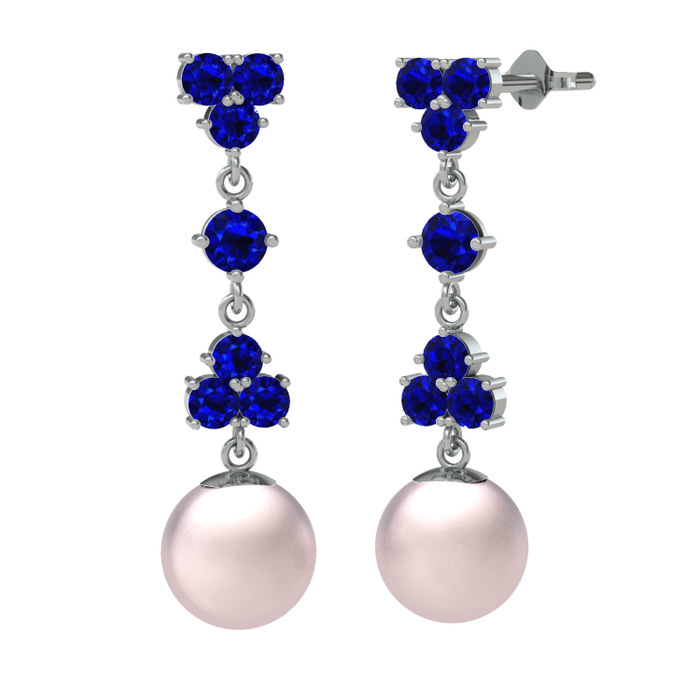 Lab safir ve pembe inci 8 ayar beyaz altın küpe