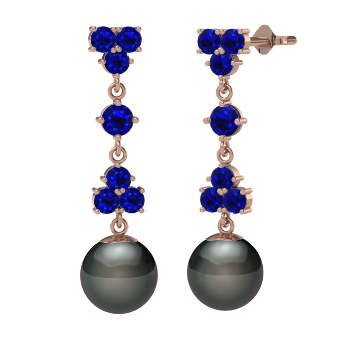 Lab safir ve siyah inci 14 ayar rose altın küpe