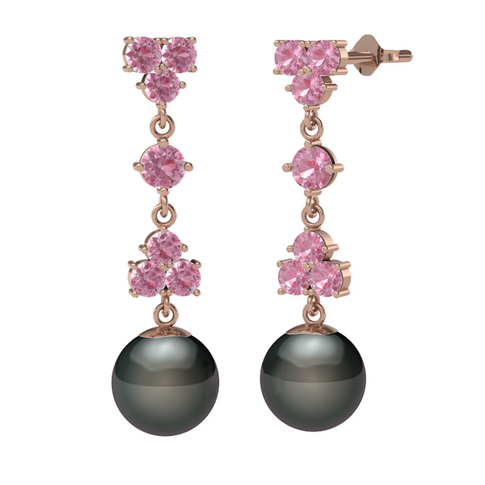 Pembe kuvars ve siyah inci 18 ayar rose altın küpe