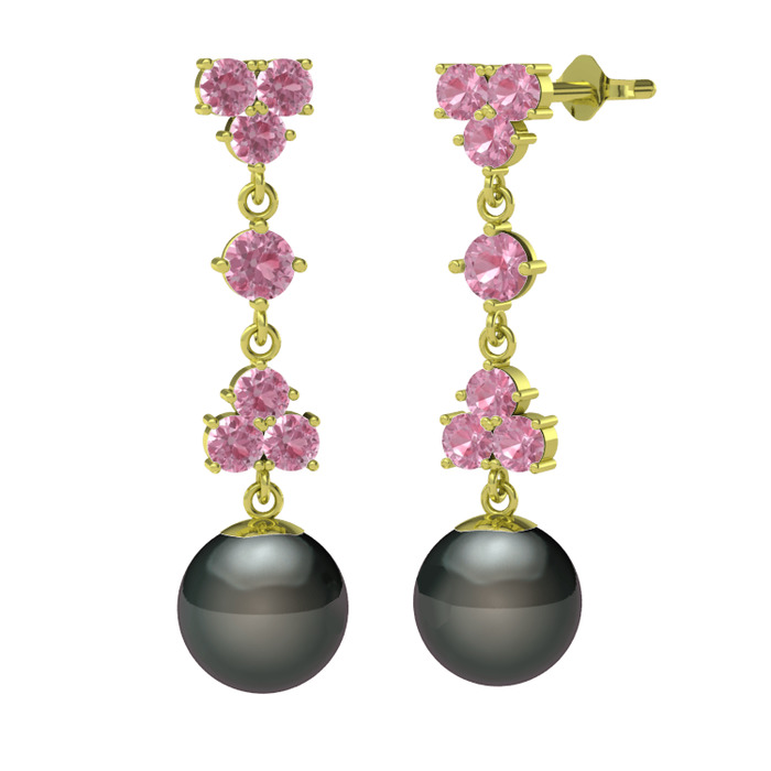 Pembe kuvars ve siyah inci 8 ayar altın küpe