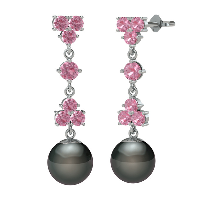 Pembe kuvars ve siyah inci 8 ayar beyaz altın küpe