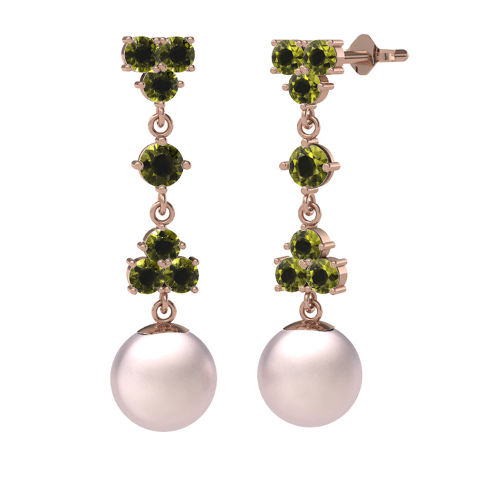 Peridot ve pembe inci 925 ayar rose altın kaplama gümüş küpe