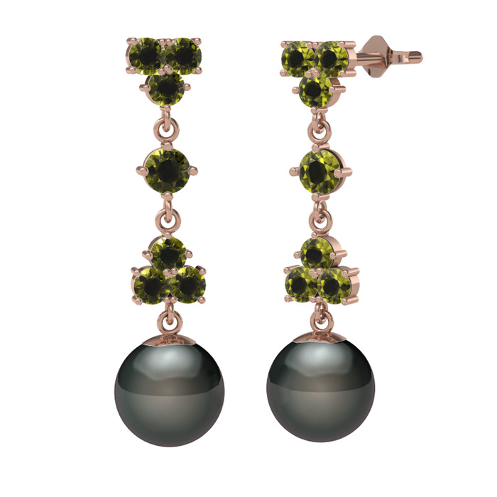 Peridot ve siyah inci 18 ayar rose altın küpe