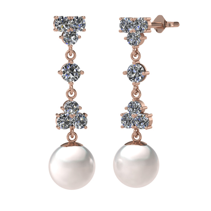 Pırlanta ve inci 925 ayar rose altın kaplama gümüş küpe (6 karat)