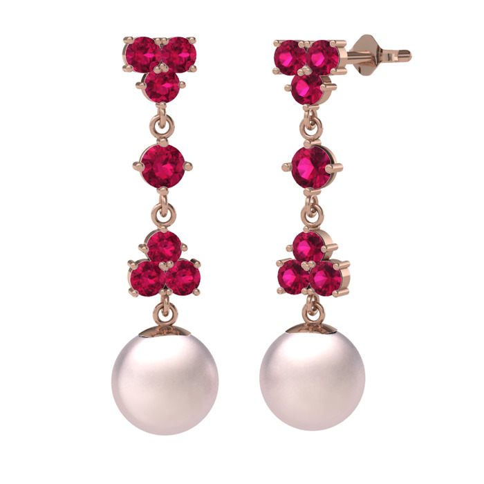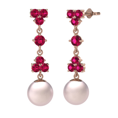 Rodolit garnet ve pembe inci 925 ayar rose altın kaplama gümüş küpe