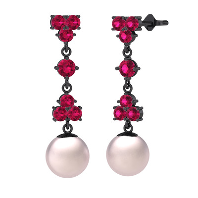 Rodolit garnet ve pembe inci 925 ayar siyah rodyum kaplama gümüş küpe