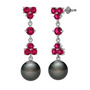 Rodolit garnet ve siyah inci 14 ayar beyaz altın küpe