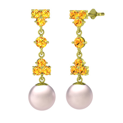Sitrin ve pembe inci 925 ayar altın kaplama gümüş küpe