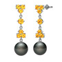 Sitrin ve siyah inci 18 ayar beyaz altın küpe