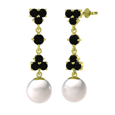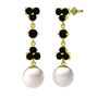 Siyah zirkon ve inci 925 ayar altın kaplama gümüş küpe