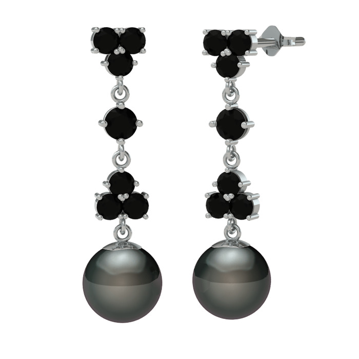 Siyah zirkon ve siyah inci 14 ayar beyaz altın küpe
